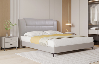 进口头层牛皮大床,米奢系列MSA2303真皮软床 草莓影视在线, 全实木静音排骨架,承重能力强,即使在床上翻滚也不会发出任何噪音, (2)15CM离地高度床脚,打…。