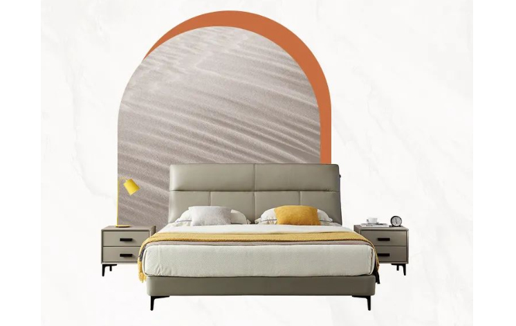 【头层牛皮  | 齐边设计  |  实木床边  | 钢木排骨架】