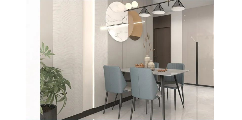 岩板餐台搭配高级灰餐椅