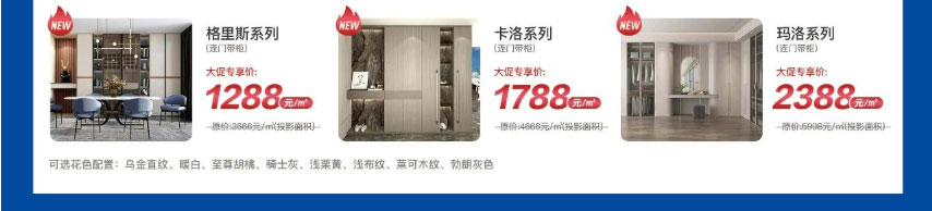 3.+299元/可升级PET/亮光/肤感UV门板何选6种花色: 雅致浅灰CS-17、语白CS-16、伯顿灰CS-29、艾伦CS-28、浅灰流CS-30、吉光金CS-31)