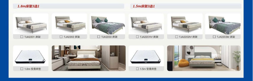 1.8m床架*1+1.8m安柔床垫*1+1.5m床架*1+1.5m安柔床垫*1