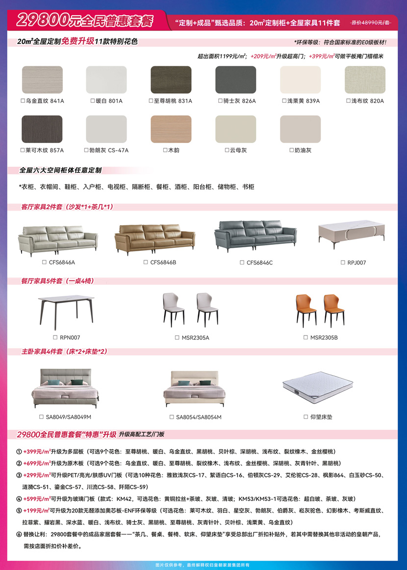 双节全屋定制特惠第三重,甄选品质29800元“定制+成品”套餐,套餐包含 20㎡定制柜+全屋家具11件套,其中全屋家具涵盖了客厅,餐厅,卧室三大空间家具,严格把控颜值和品质,一站式搞定整家,为您省时,省力又省心,真的是实力出圈, 在线影视。