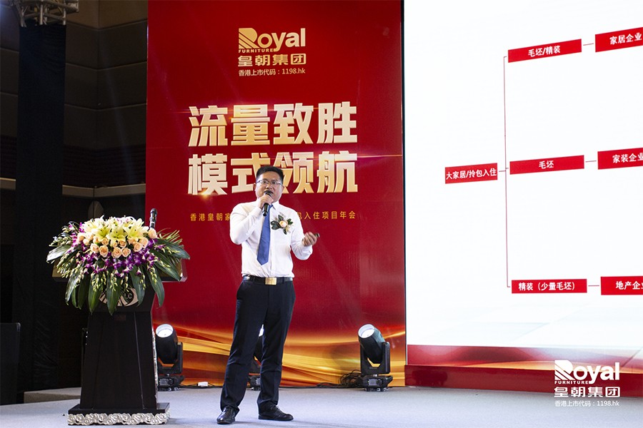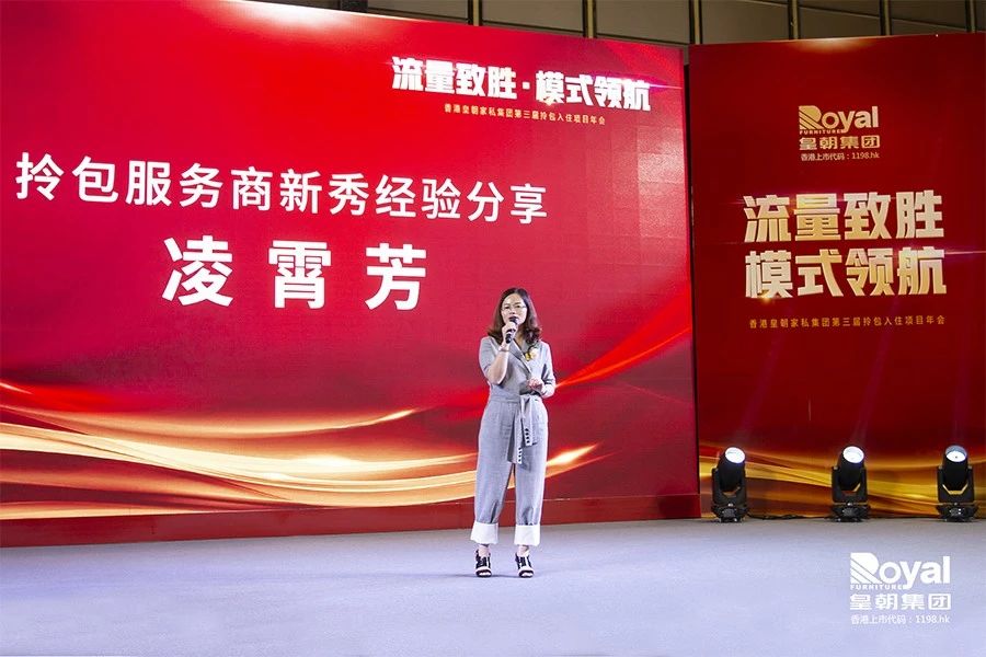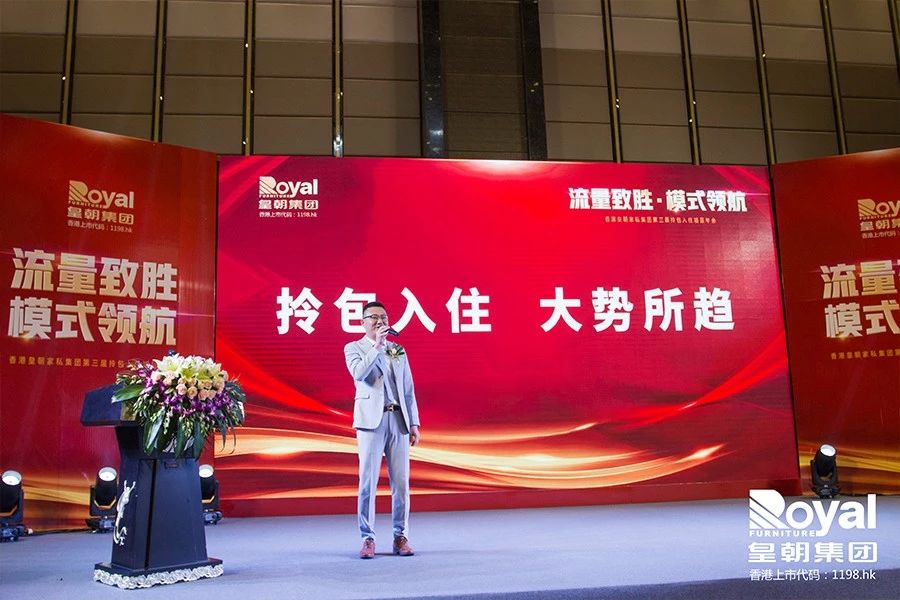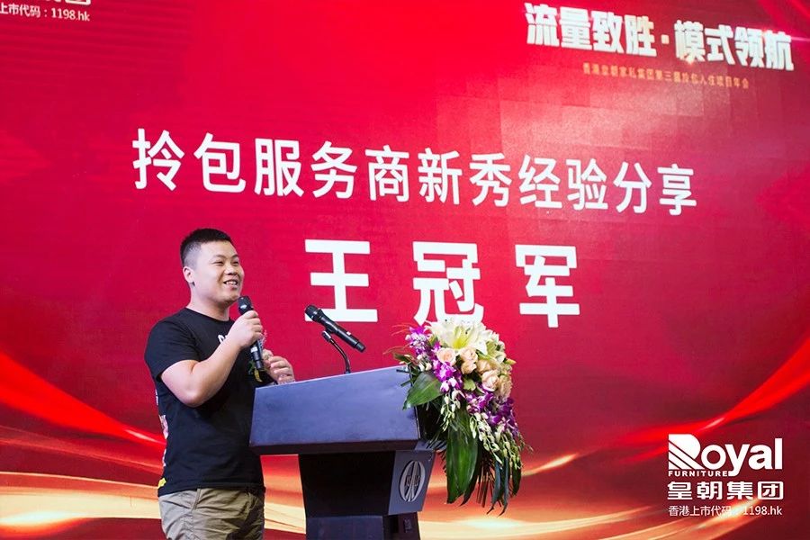 王总同样是2018年加入了拎包服务商行列,经过一年的运作,他已经拥有了一支60人的项目团队,实现了系统化、标准化的经营,他在分享中也着重讲述了团队建设的重要性,并向皇朝对于门店团队建设的培训支持表达了感谢,他鼓励同仁们要勇敢的迈出第一步,一起加入到皇朝拎包大家庭来。