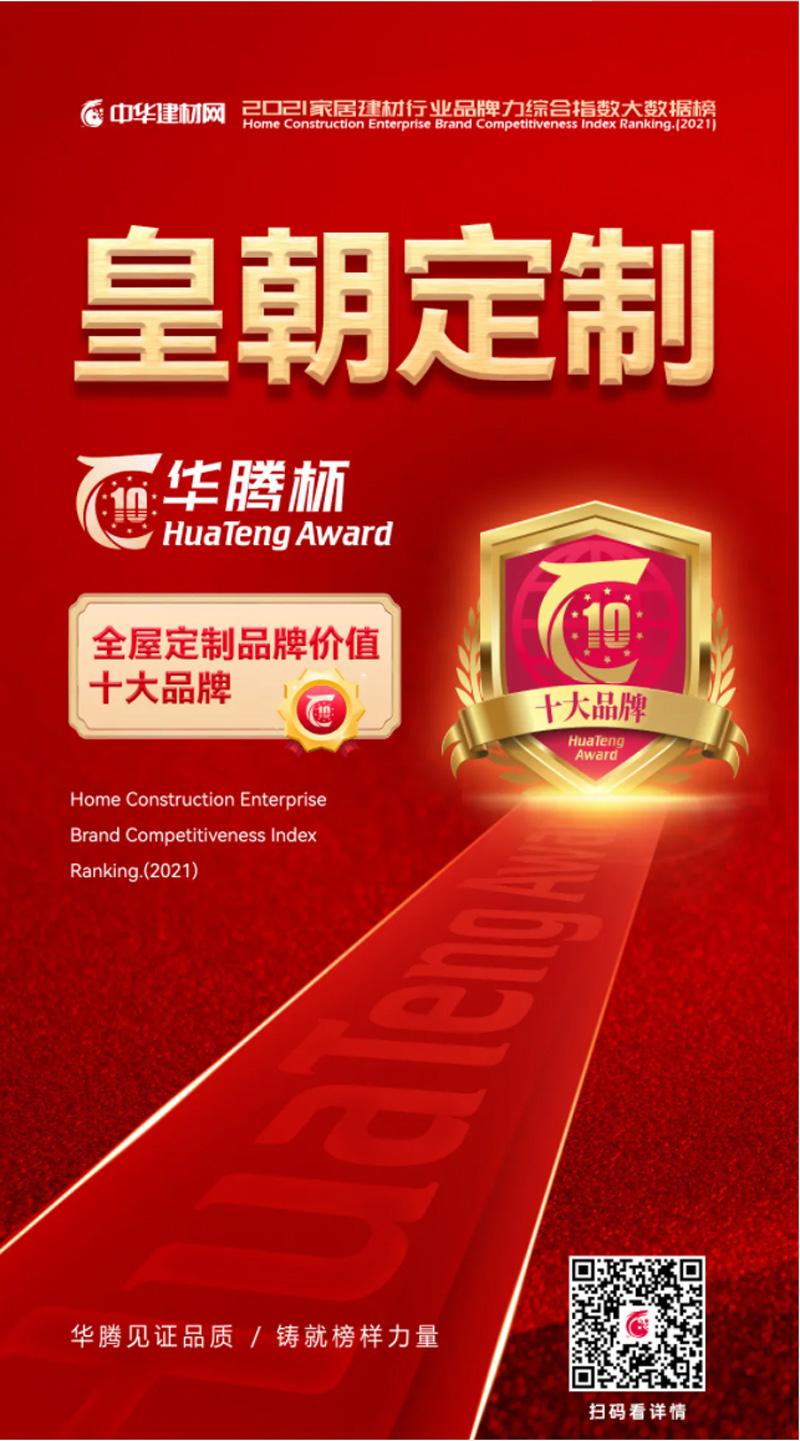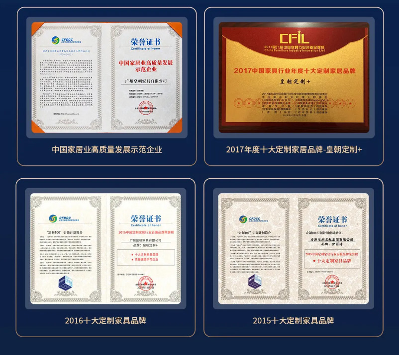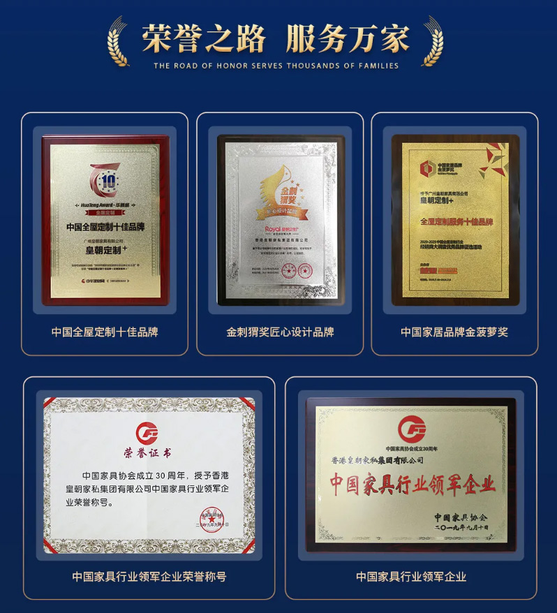 立足定制市场,皇朝定制获得无数荣誉,“中国行业十大影响力品牌”“中国家居产业领军品牌”“中国品牌影响力(行业)十大投资价值品牌”等 草莓影视免费观看, 。