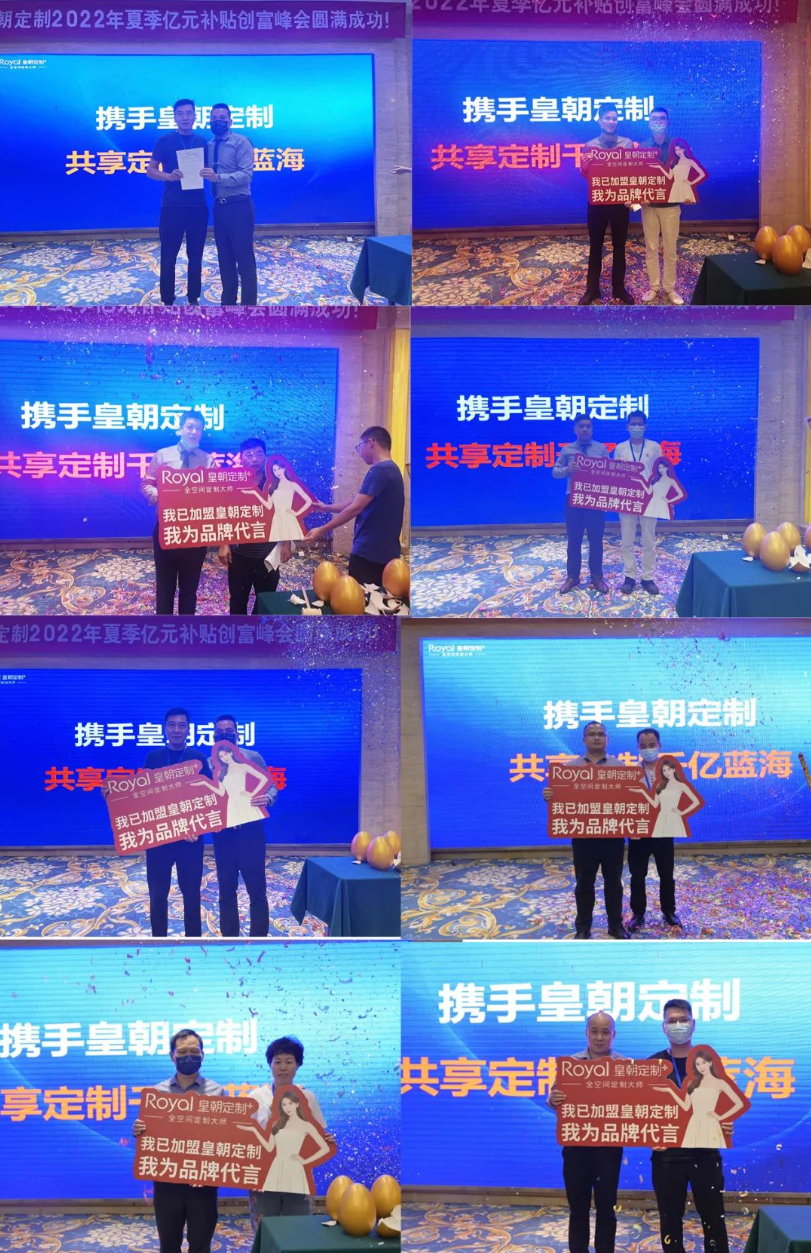 尤其是在2022年的样板市场打造下,皇朝定制开展以“百万活动”成就“千万大商”的活动,终端捷报频传,其中黄埔店、商丘店、青山湖店等都拿下了百万业绩。配合“整家”热点,皇朝定制拿出了丰厚的诚意和加盟帮扶政策,并在本次峰会上进行公布。