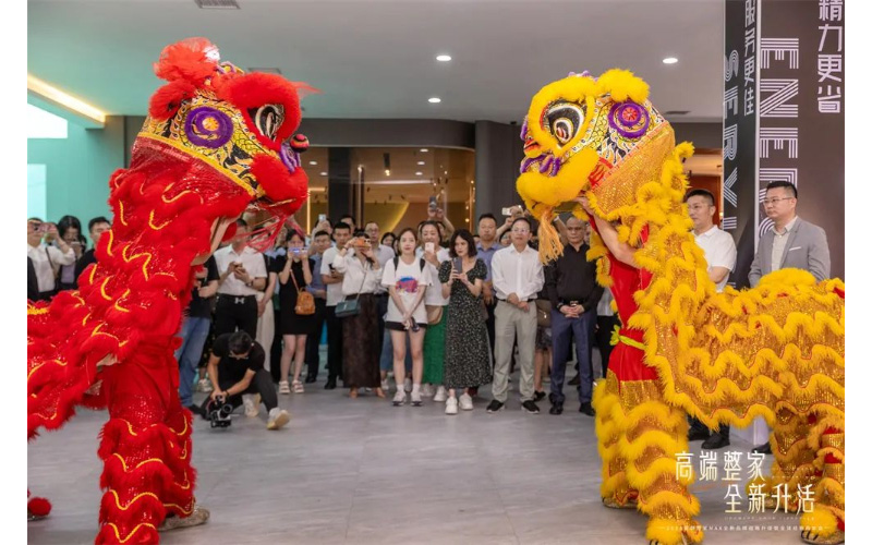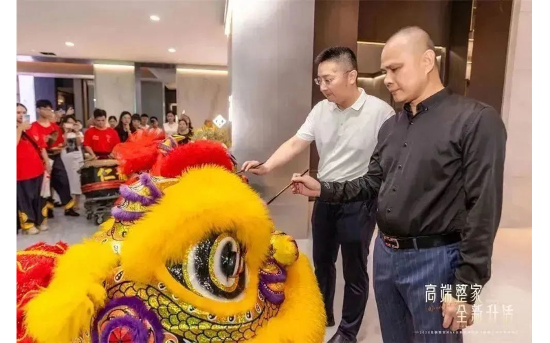 杨俊先生和陈浩先生一起为皇朝高端整家定制生活馆揭幕仪式进行醒狮点睛,更有狮子采青,醒狮起舞献祥瑞 在线影视,祝愿, 。