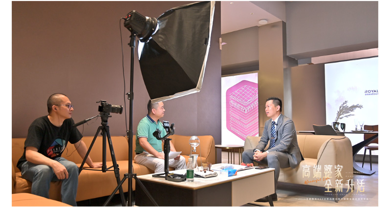 媒体应邀而至,领略皇朝高端整家定制生活馆沉浸式生活化家居空间展示的魅力。皇朝定制营销总监袁丹先生接受百家媒体现场采访。
