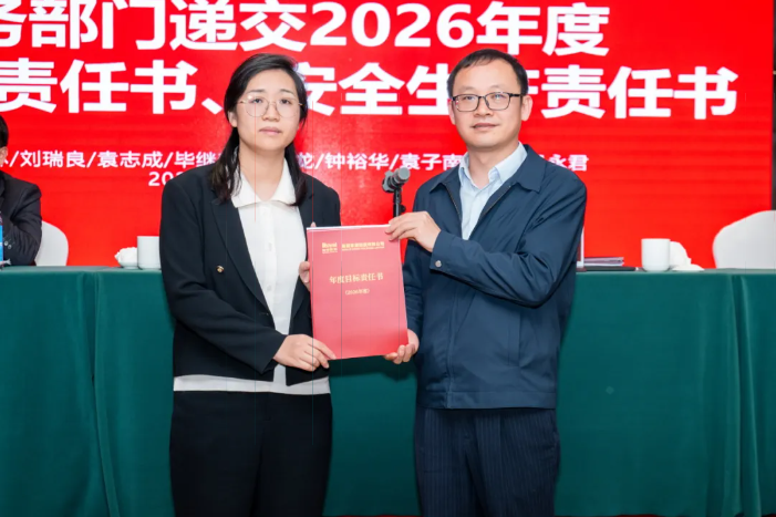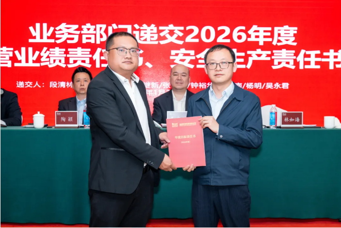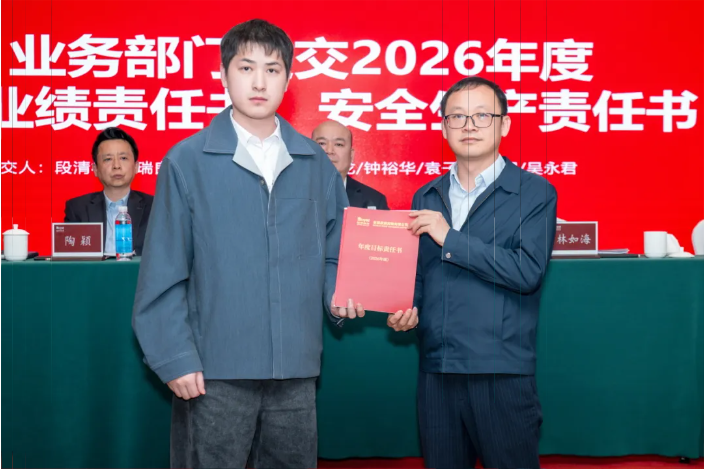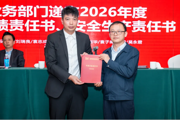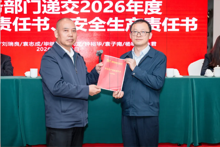 各业务部门代表分别递交2026年度经营业绩责任书、安全生产责任书,明确将进一步压实管理责任,筑牢安全防线,为各项工作顺利推进保驾护航。