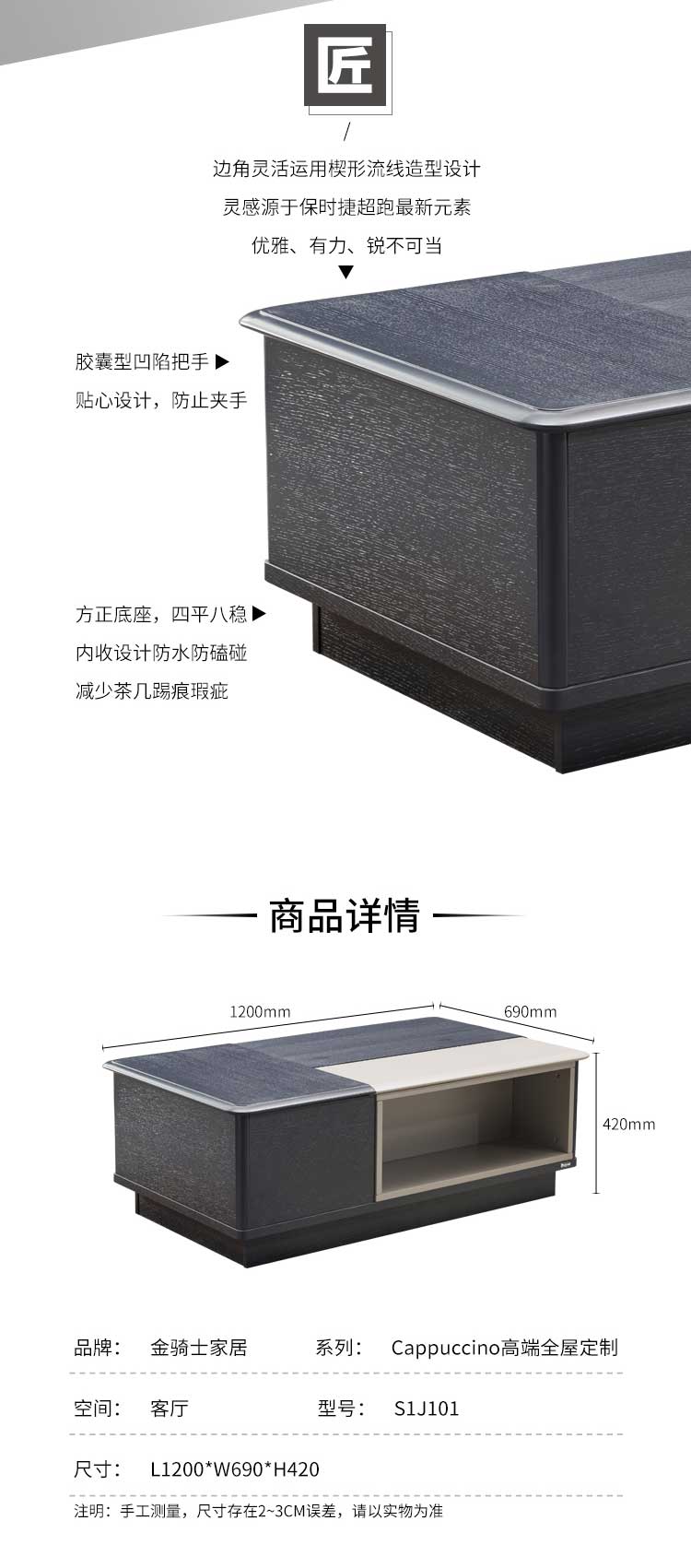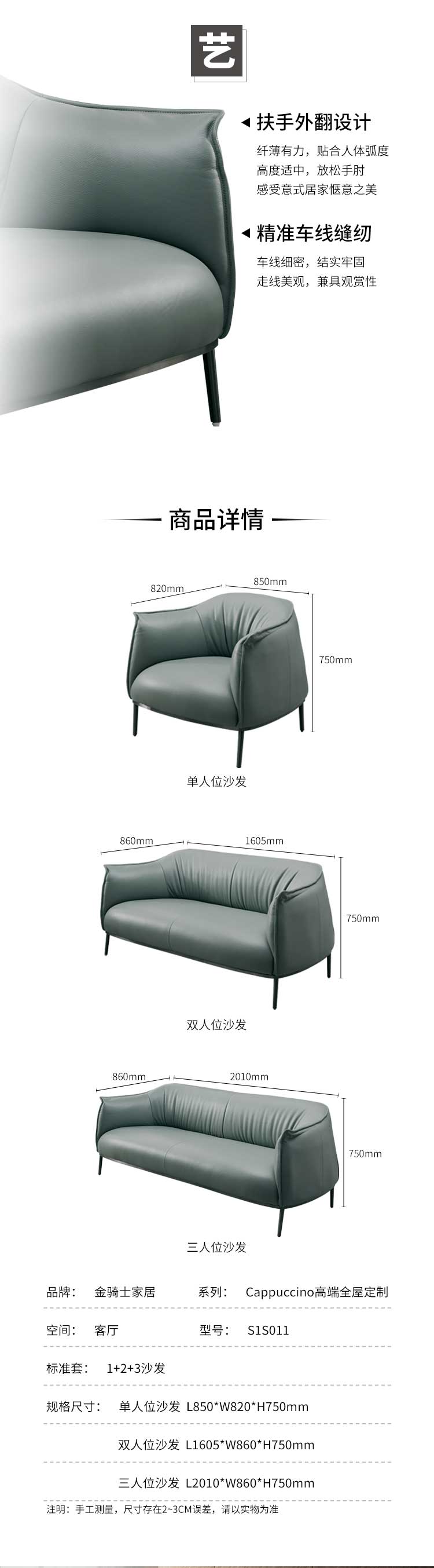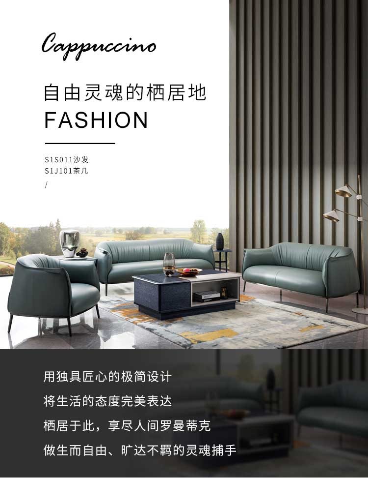 品牌:金骑士高端定制 系列:Cappuccino高端定制 组合型号:S1S011沙发 + S1J101茶几