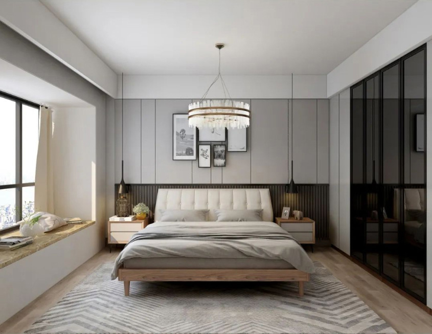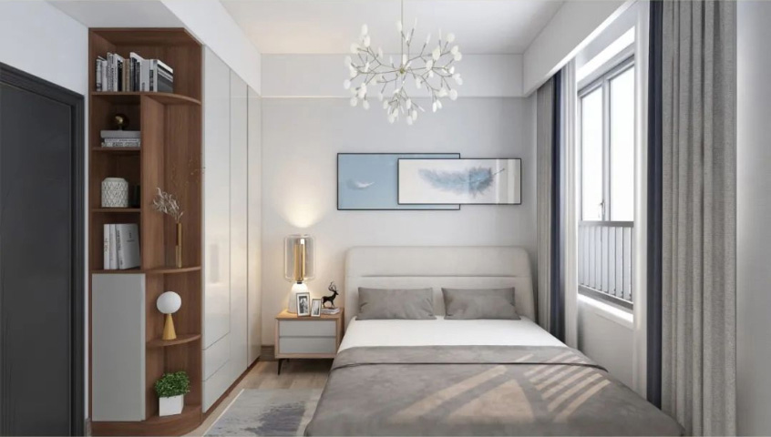 次卧强调了空间的收纳功能,到顶的衣柜设计不易积灰, 草莓影视在线。