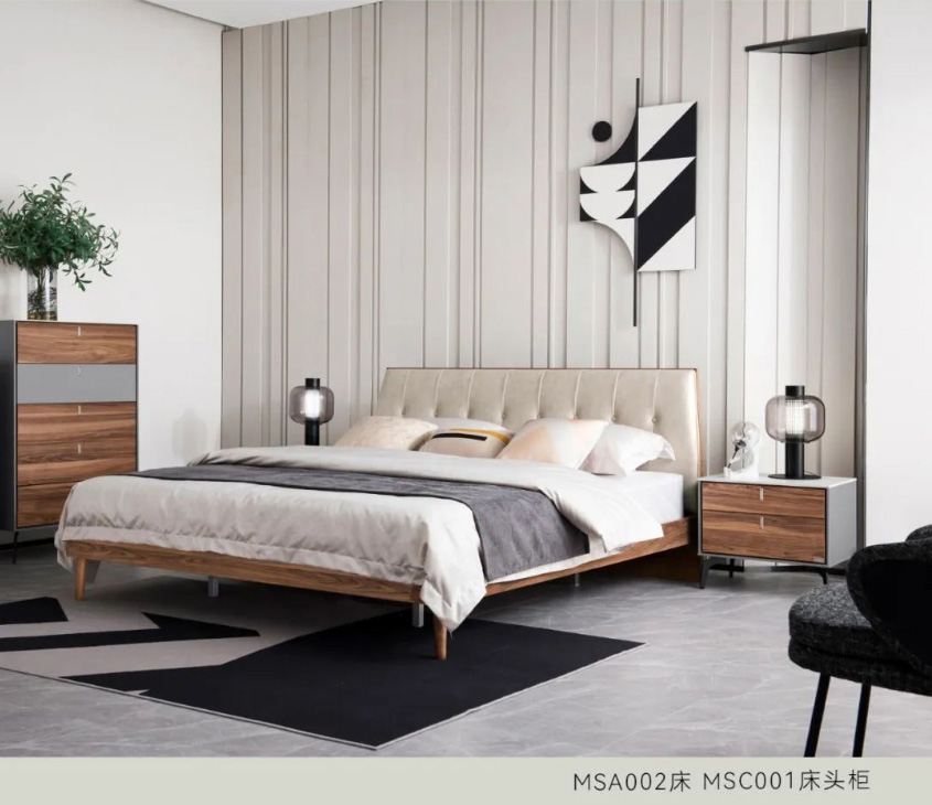 温润的原木色调,搭配经典意式床屏设计,烘托了卧室的静谧舒适氛围 草莓影院, 。