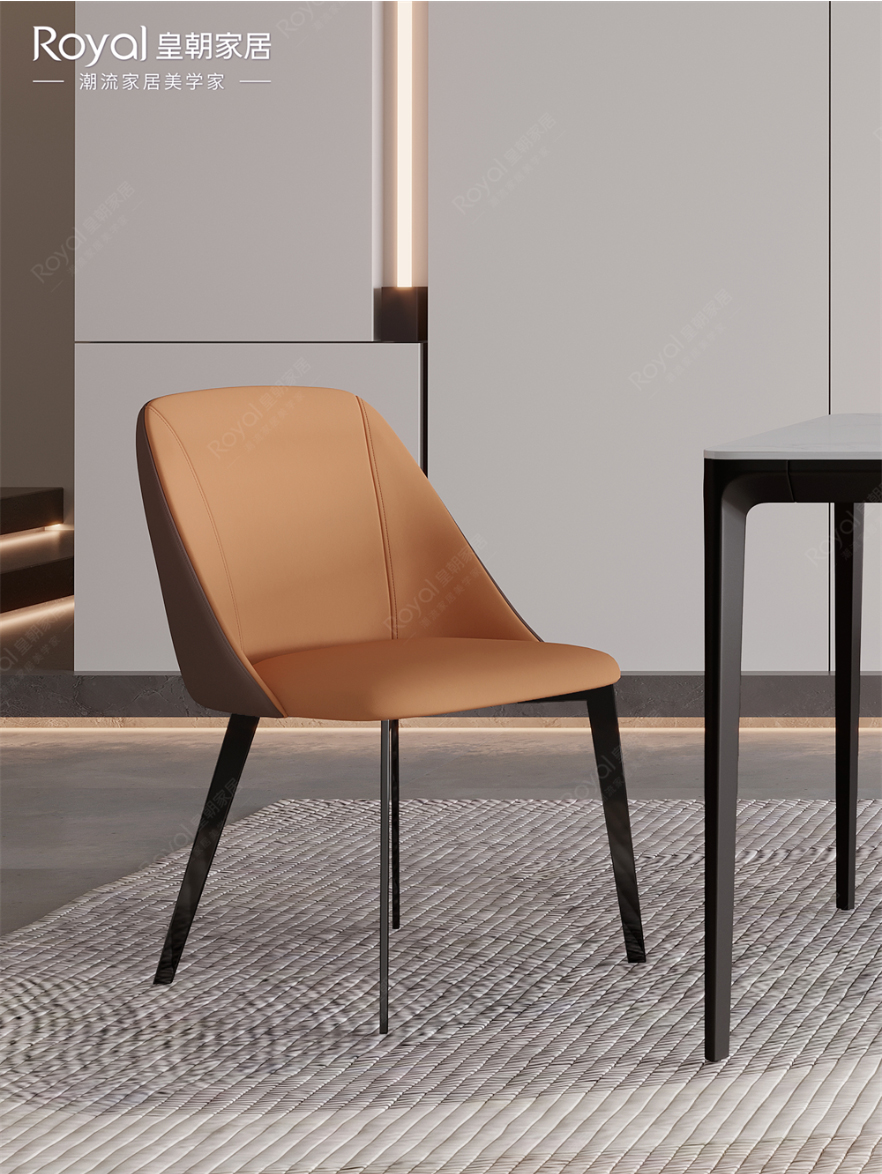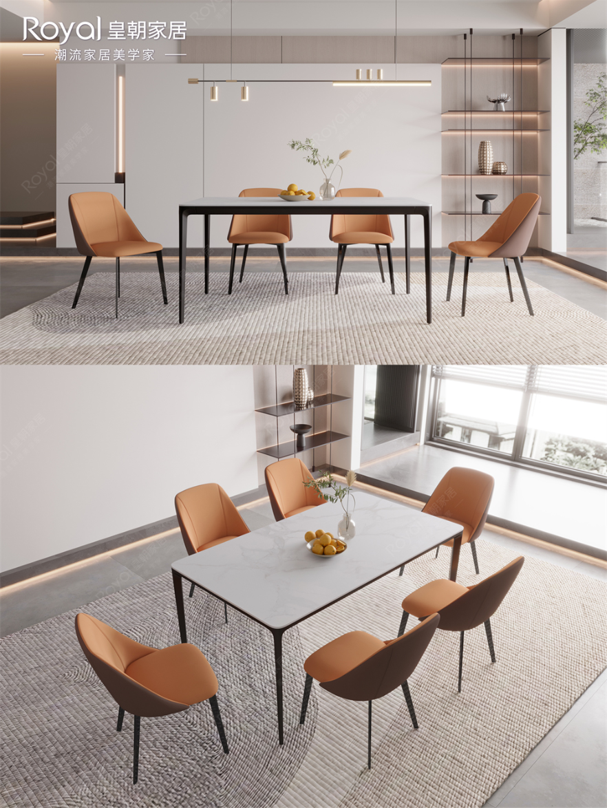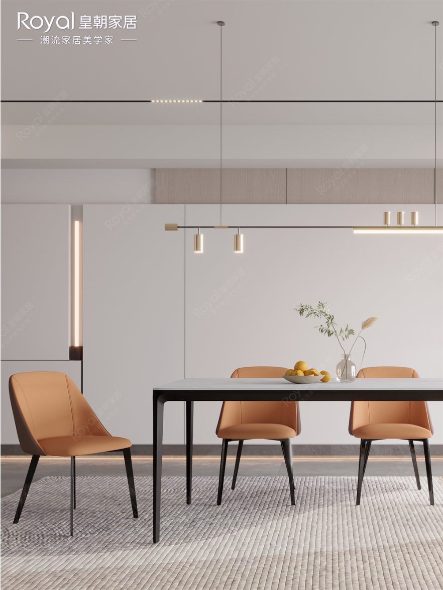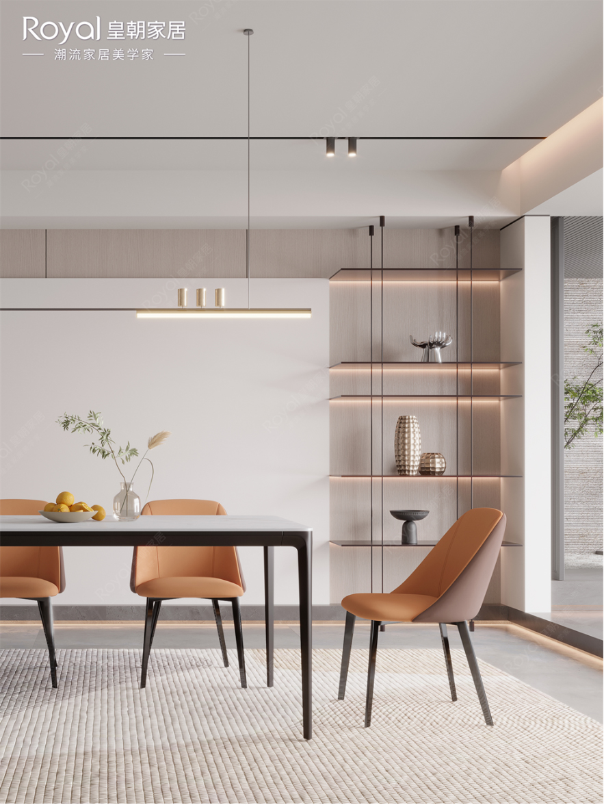 ① 整体造型简洁无矫饰,时尚配色点亮餐厅空间