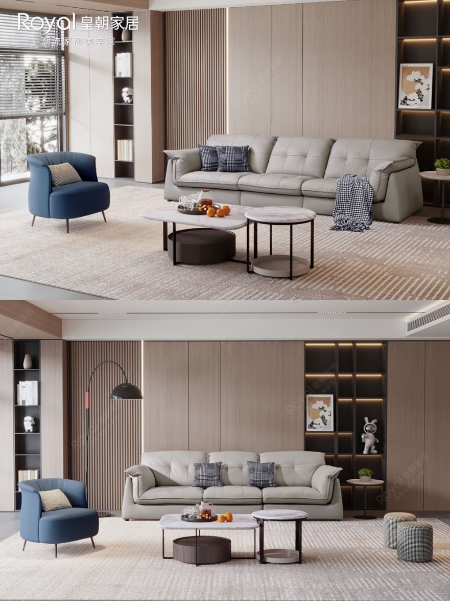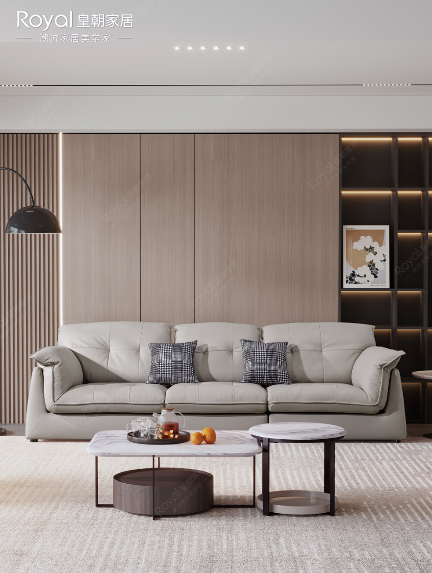 挺括外形 草莓影视,经典配色,彰显意式设计美学的魅力,轻松拿捏客厅高级感,优质内材填充,舒适更在不言中,实在是都市人的理想家居之选, ①甄选品质好牛皮,大面积覆盖,触感顺滑柔韧 ②松软厚实大靠包,贴合身体,温柔呵护肩颈腰 ③宽大座面,自在坐躺不拘束,多人聚会也够坐 ④花瓣造型扶手,饱满蓬松,兼具美观与实用性 ✅沙发:CS2312 尺寸:2880*1050*850mm ✅休闲椅:MSSR2203 尺寸:730*780*720mm ✅茶几:MSJ23103 尺寸:970*750*385mm ✅圆几:MSJ23203 尺寸:560*560*455mm 。