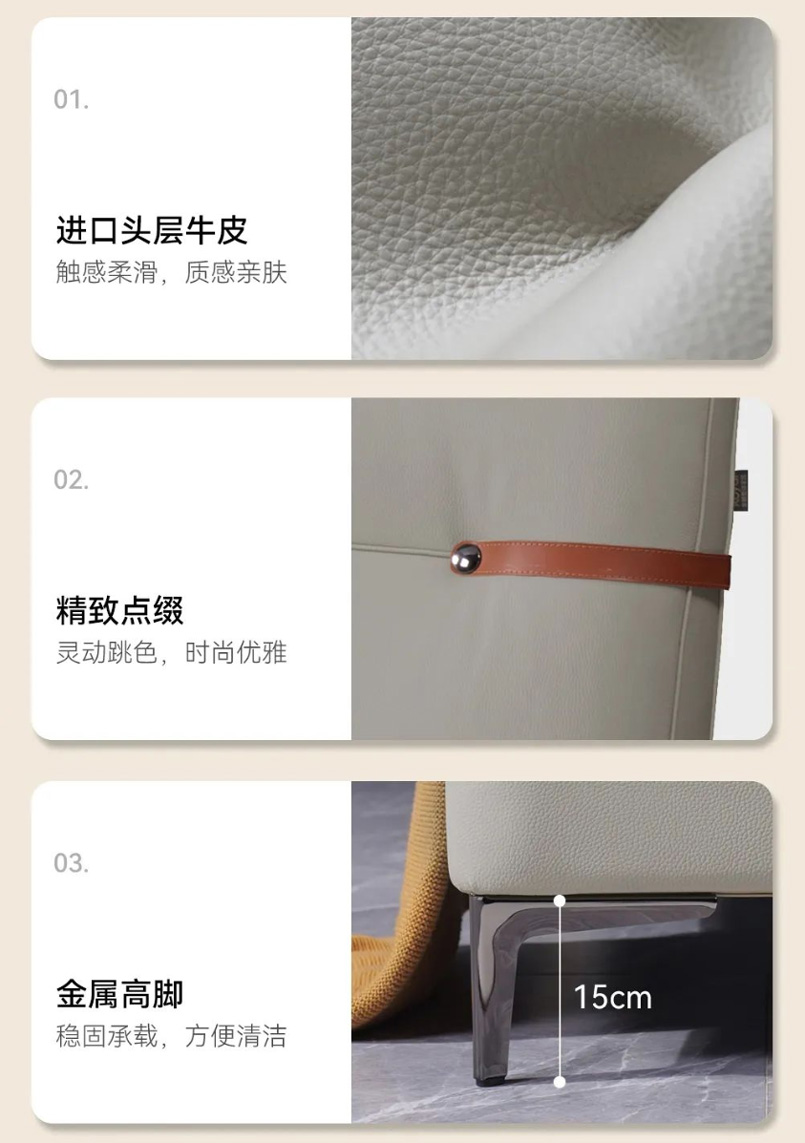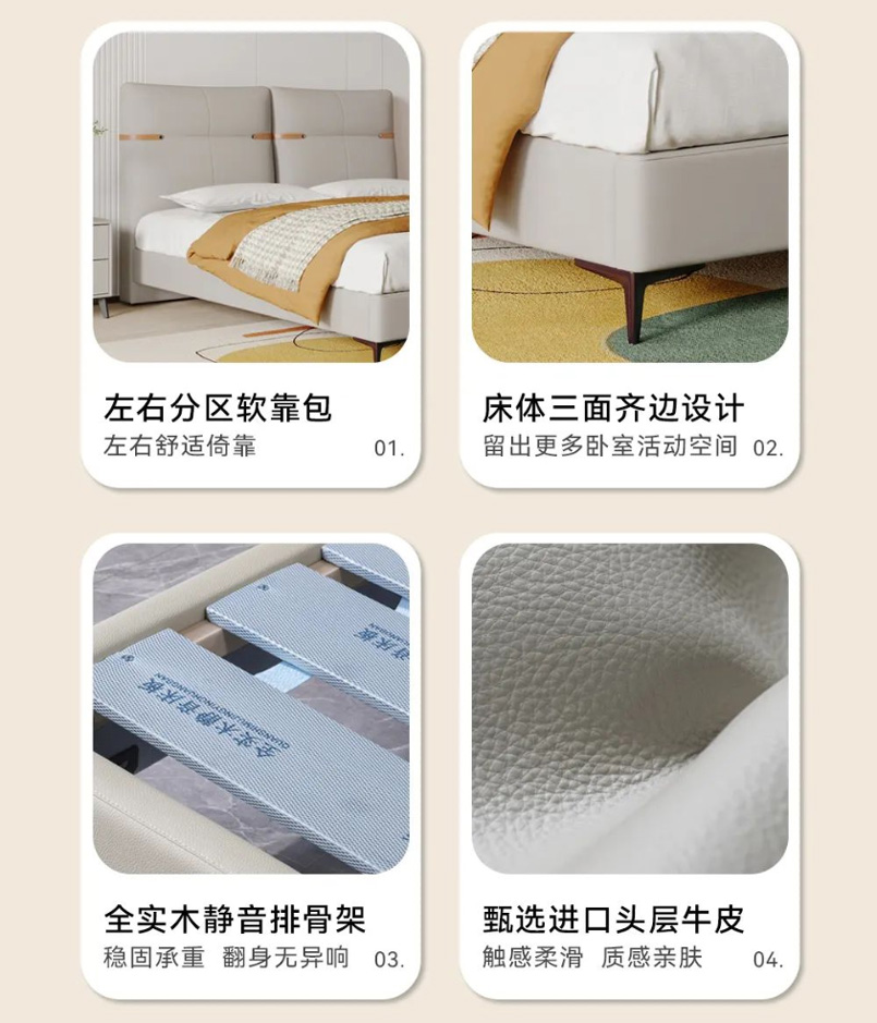 【甄选进口头层牛皮|三面齐边设计|全实木静音排骨架