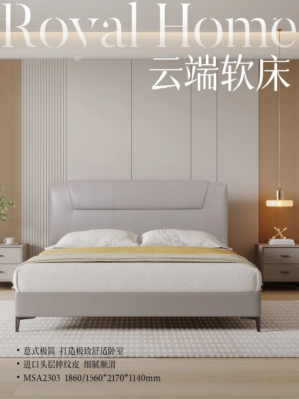 进口头层牛皮大床,米奢系列MSA2303真皮软床 草莓影视, .
