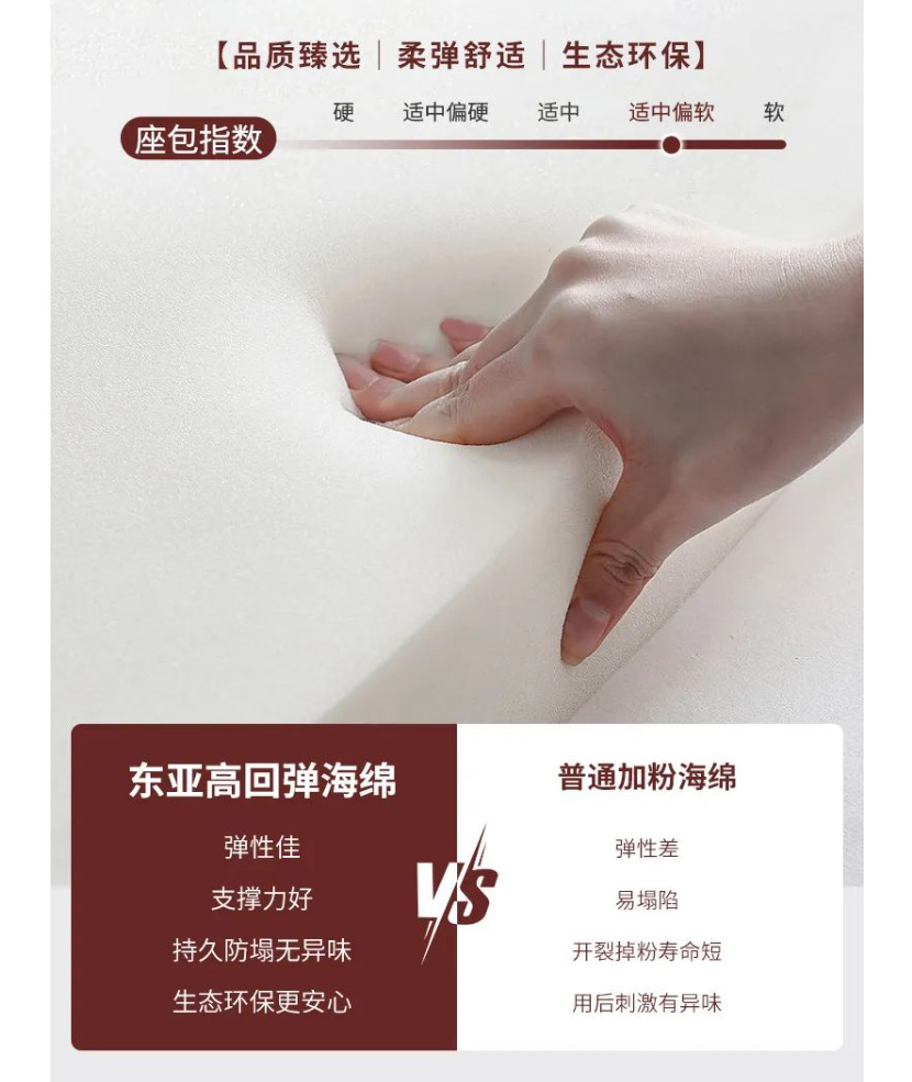 靠包蓬松饱满,靠背柔弹贴合